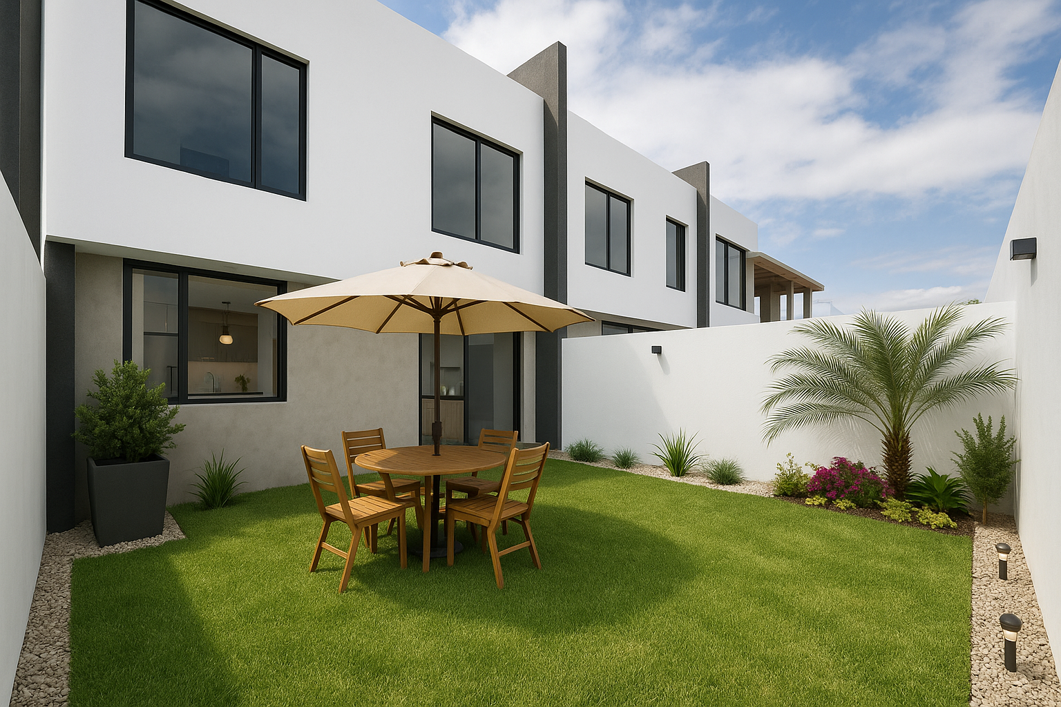 En SAN LUIS, cada ambiente tiene su carácter. El patio privado invita a reuniones al aire libre; las terrazas, a desconectar; el tercer nivel, a reinventar el día con un rincón de trabajo, lectura o entrenamiento. Todo con la privacidad y el confort que buscas, sin alejarte de lo importante.